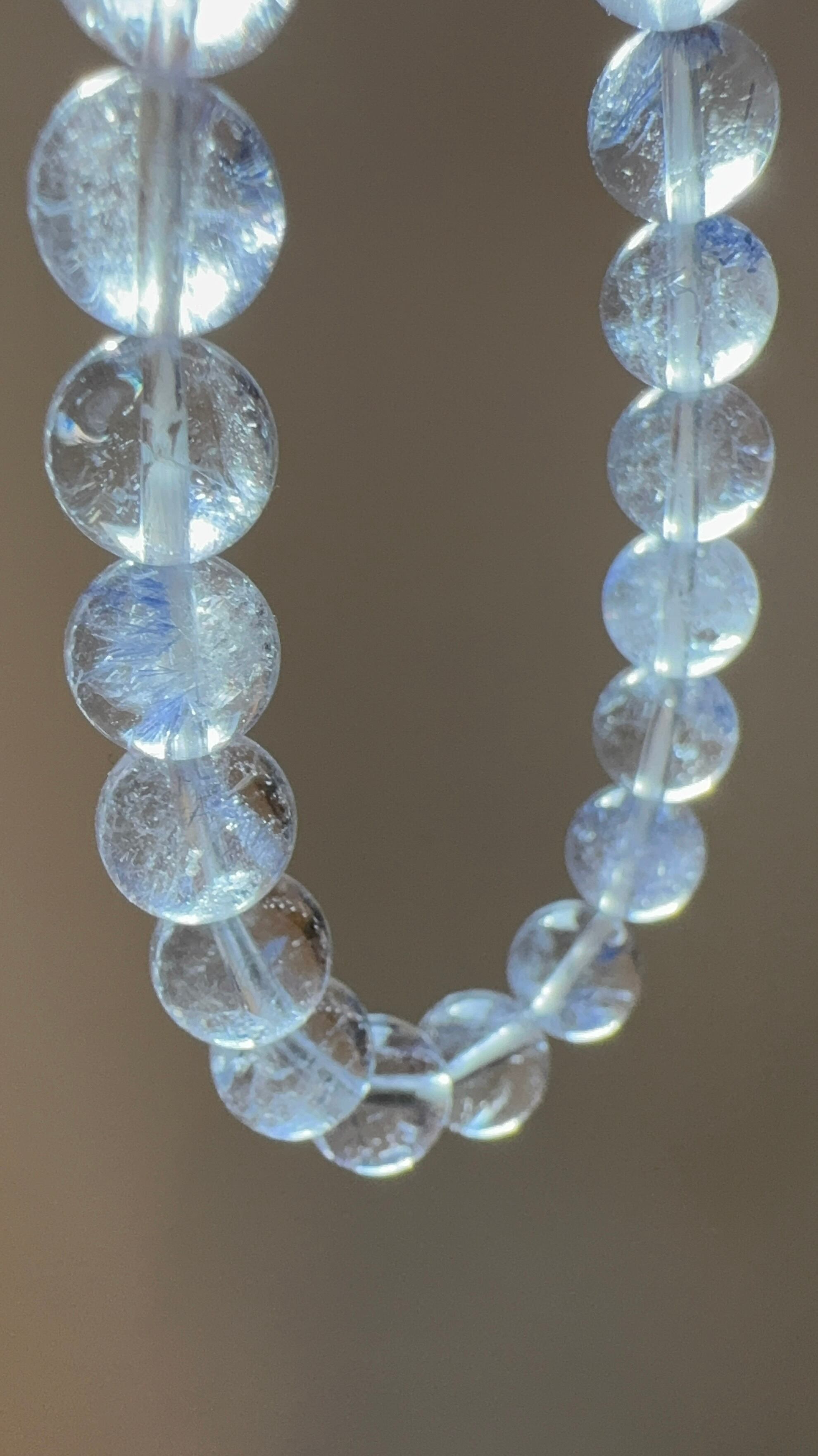 デュモルチェライトinクォーツ ブレスレットは、独特の青色の針状や繊維状の鉱物が美しいコントラストを生み出し、見る者を魅了します。透明な水晶の中に広がる神秘的なデザインは、身につけることであなたのスタイルを一層引き立て、特別なアクセントとなるでしょう。