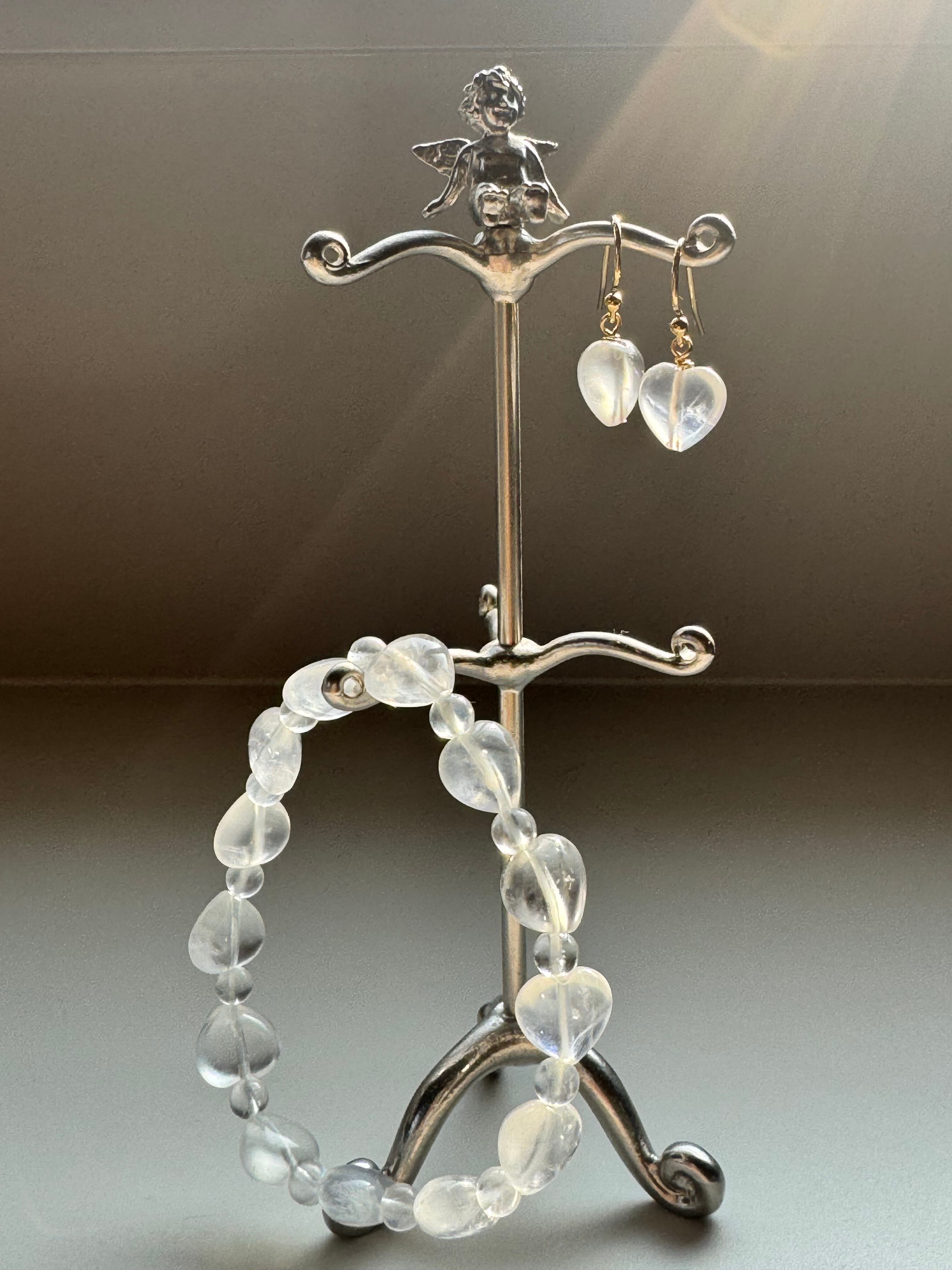 ハート型ブルームーンストーン、ポストはイヤリング仕様に変更可能